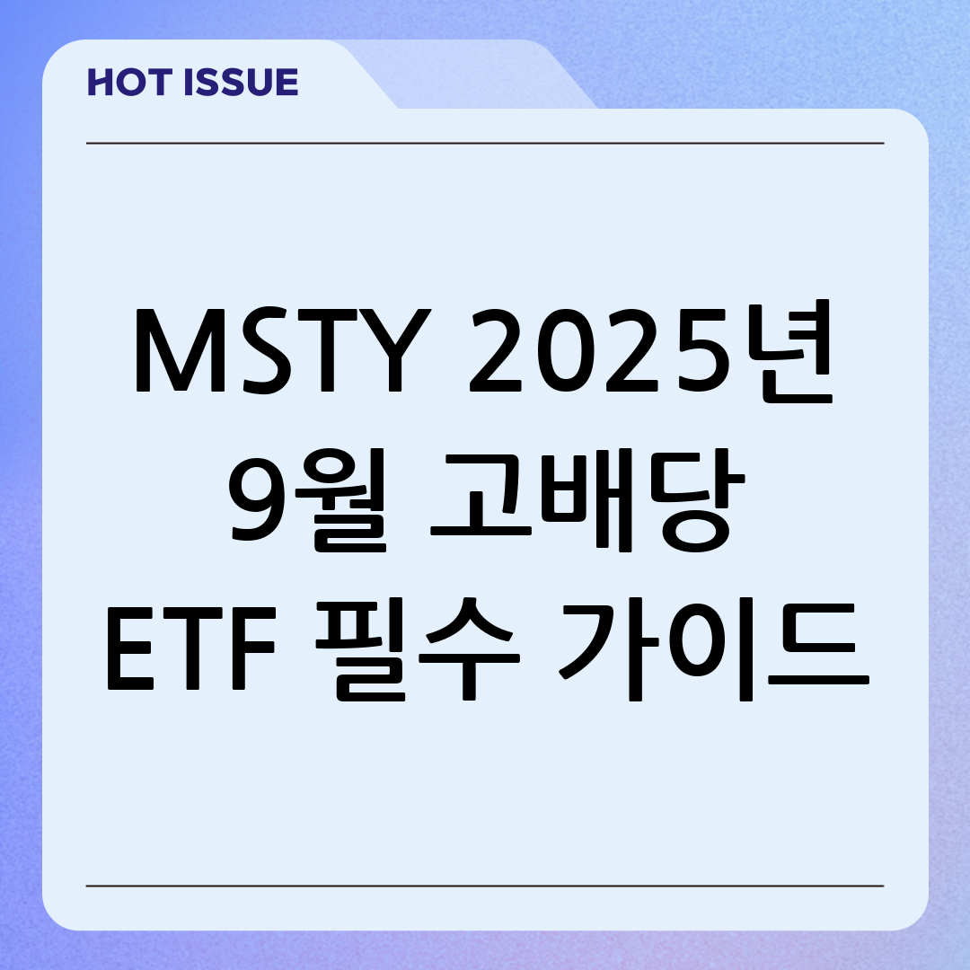 안녕하세요, 투자자 여러분! 오늘은 많은 분들이 궁금해하실 2025년 9월 MSTY(YieldMax MSTR Option Income Strategy ETF)의 배당금, 배당락일, 그리고 이 매력적인 ETF의 투자 전략과 주의사항에 대해 자세히 알아보는 시간을 갖겠습니다. 최근 고배당 월배당 ETF에 대한 관심이 뜨거운데요, 그중에서도 특히 높은 수익률을 자랑하는 MSTY에 대한 궁금증이 많으실 겁니다. 저 또한 처음 MSTY를 접했을 때, 그 높은 배당률에 깜짝 놀랐던 기억이 있습니다. 하지만 모든 투자가 그렇듯, 높은 수익률 뒤에는 그만큼의 리스크가 숨어있기 마련이죠. 과연 2025년 9월 MSTY 배당금은 어떤 의미를 가지며, 우리는 어떤 점들을 고려해야 할까요? 참고로 MSTY ETF실시간 주가 정보는 아래의 링크를 확인해 보시기 바랍니다.